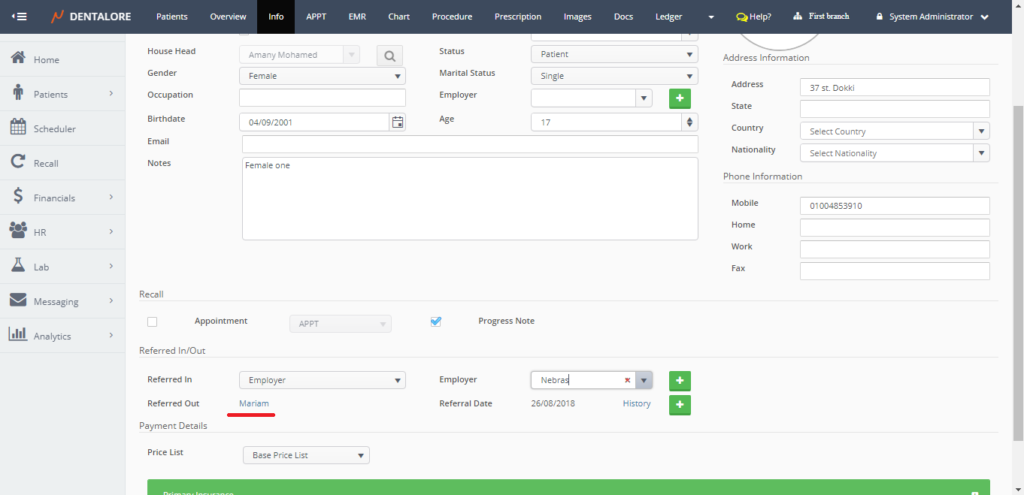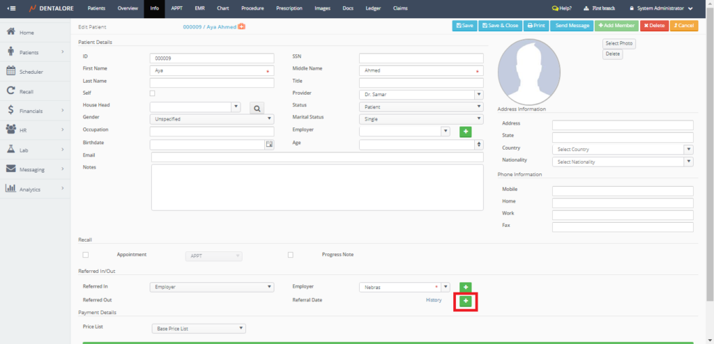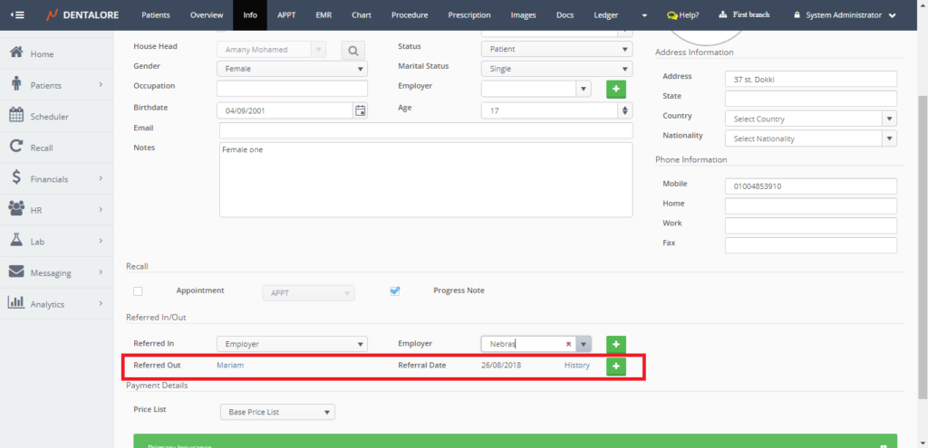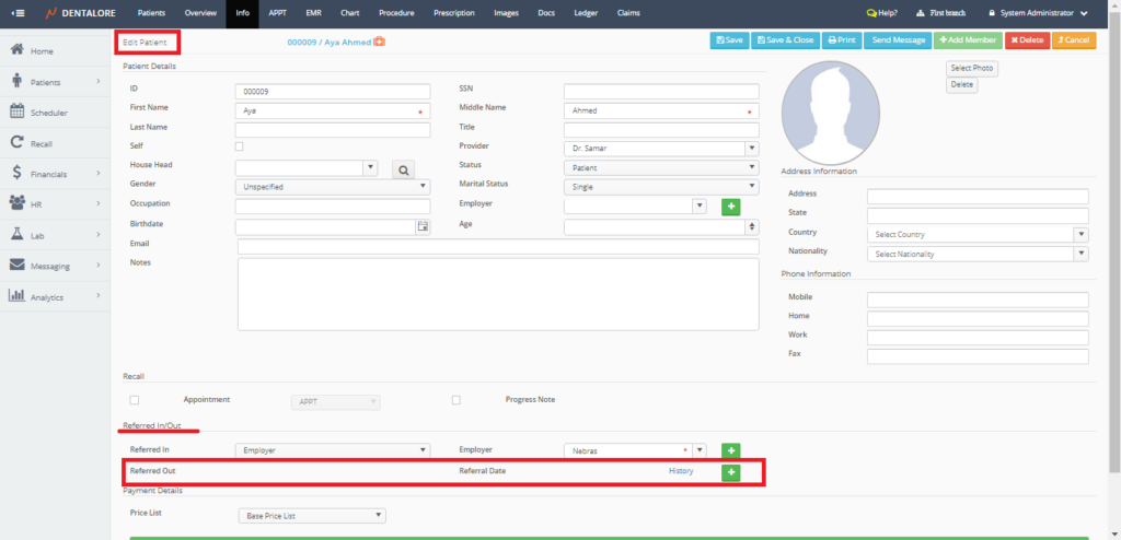 - “Edit Patient” page opens, Check the Referred In/Out Section.