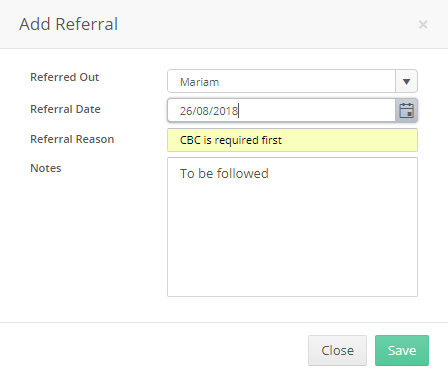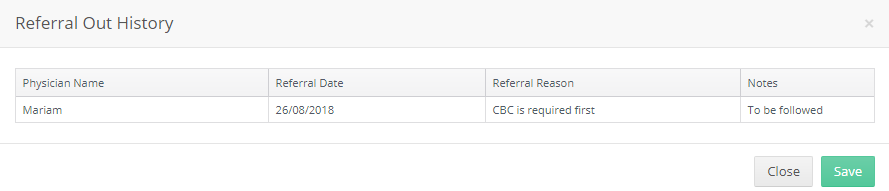 - Note that: The added Referred out can’t be deleted, User could only update in the added referral data.
