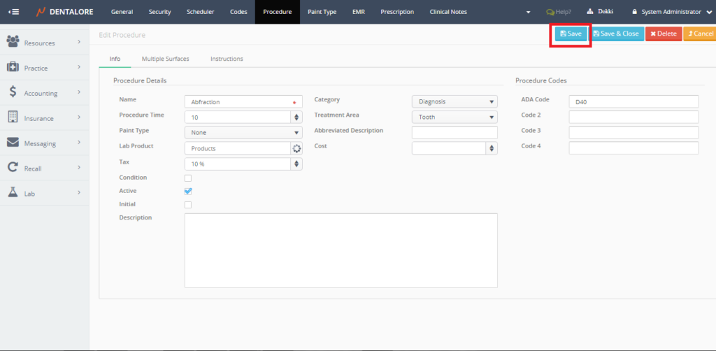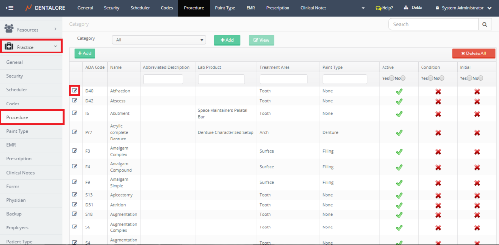 - Go to “Settings” >> “Practice” >> “Procedure” >> “View Procedure”