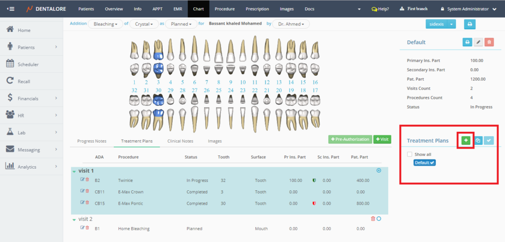 - New treatment plan added and listed in the (Treatment Plans) section.