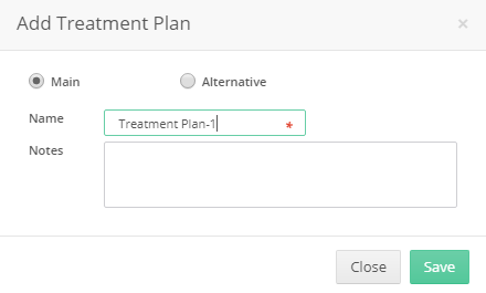- New “Add Treatment Plan” Popup opens to allow user to add either a main or alternative treatment plans.
