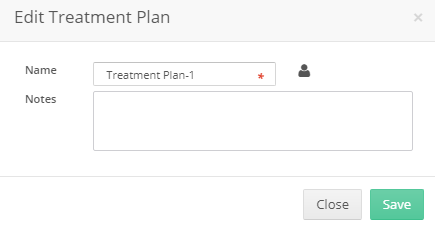 — “Close” button: Once pressed, Popup closes and no treatment plan created.