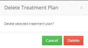 — Delete: Enables user to delete the selected treatment plan. Treatment plan will be deleted with procedures included to it.