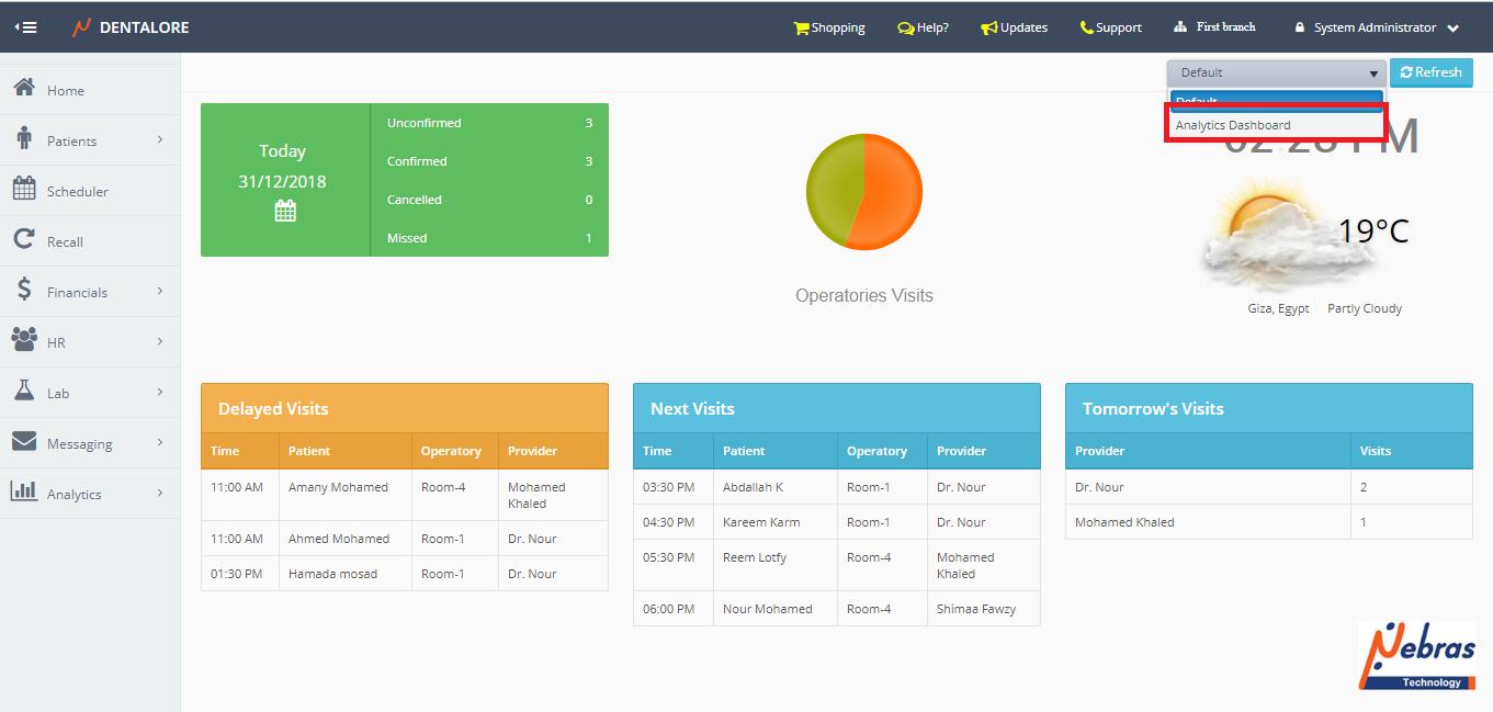 Analytics Dashboard displays summary for some statistical data related to your clinic.