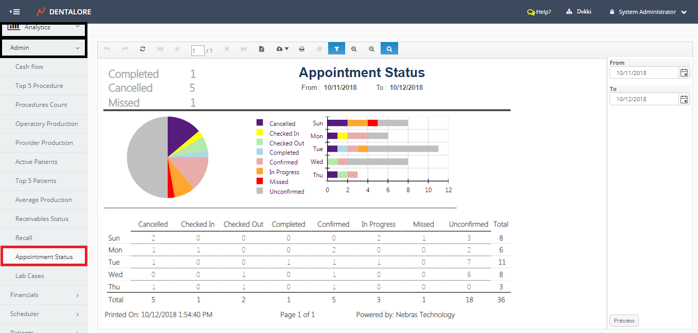 • Analytics >> Admin >> Appointment Status.