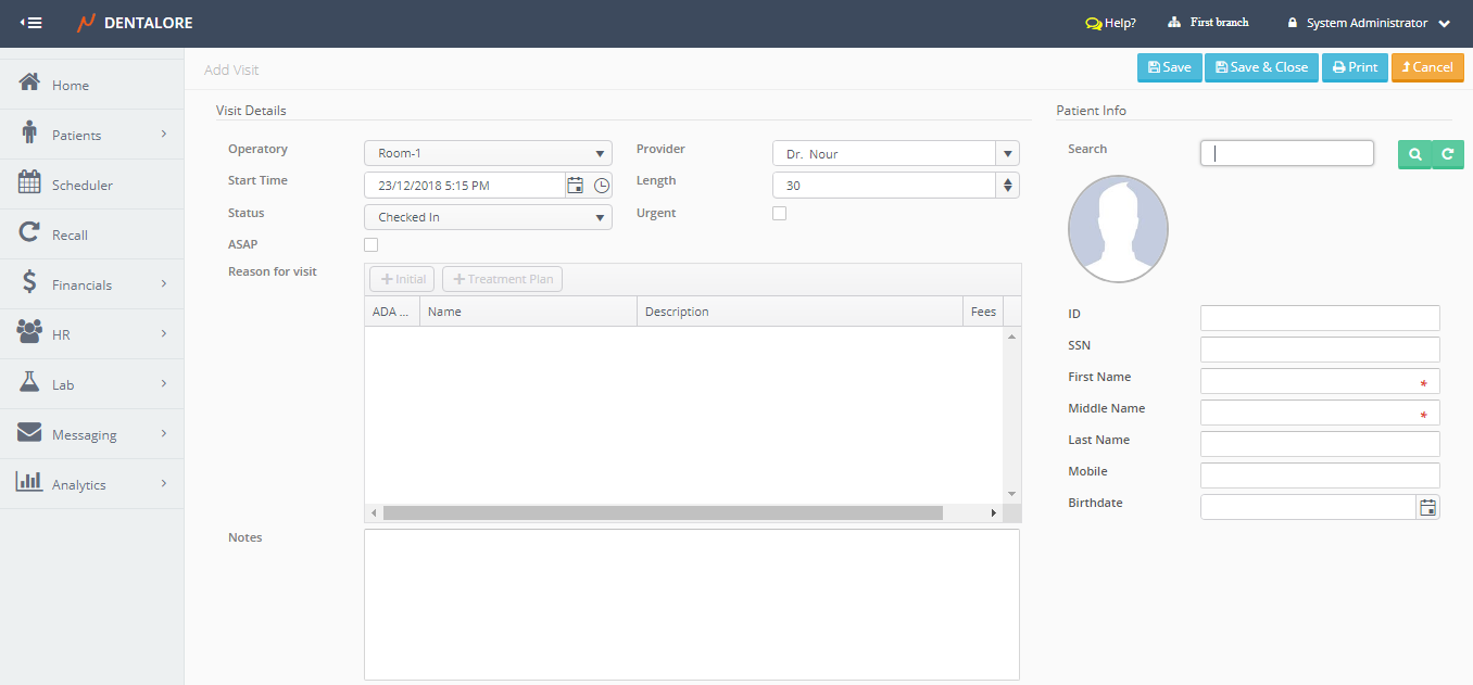 - Add appointment for required patient and save. For more information about visit details, check: (Add Visit) Page.