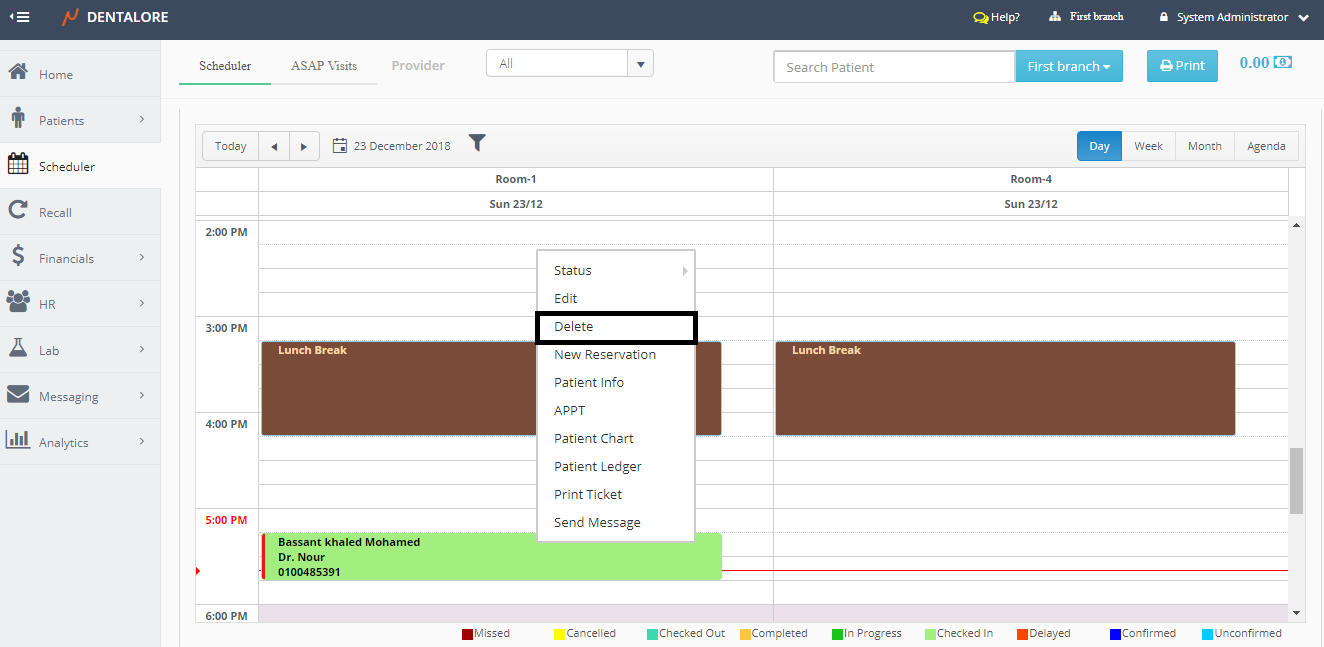 And there are 3 ways to delete an appointment from the Scheduler View which are: