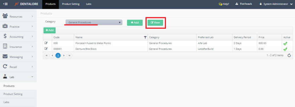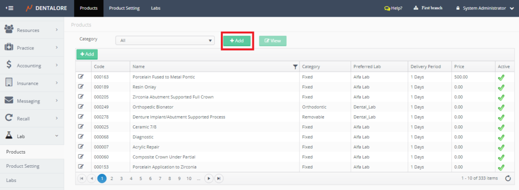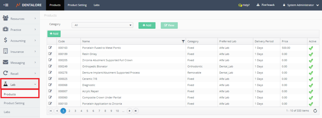 In Dentalore system you have the ability to organize the Lab products upon your need and classification, that you can add, edit and delete Product categories and products included in each category.