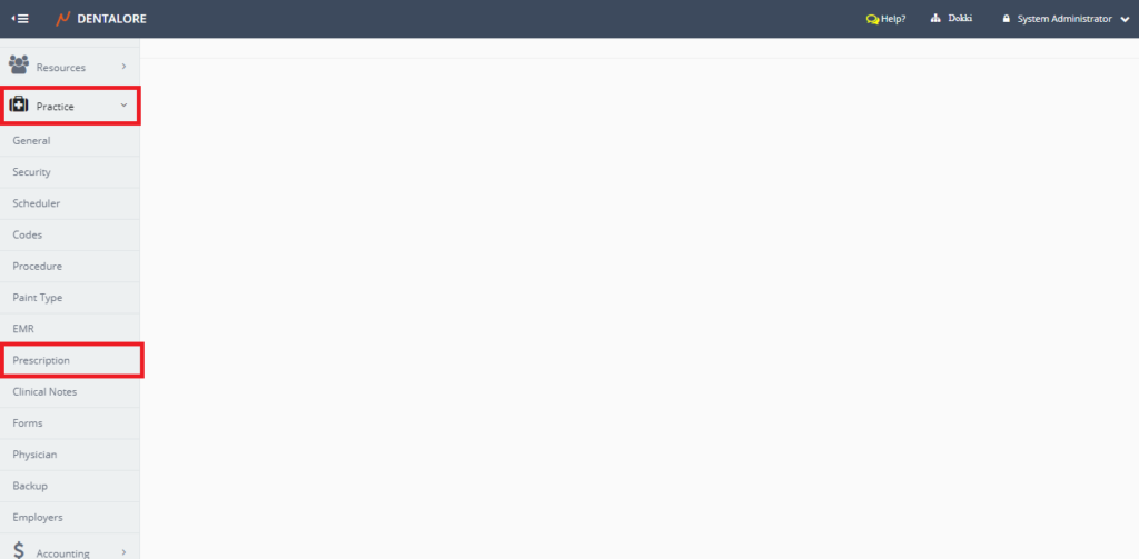 • Expand “Practice” menu and select “Prescription” sub module.