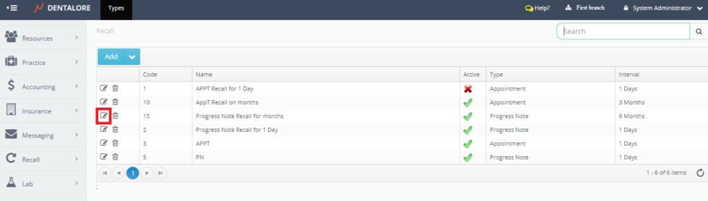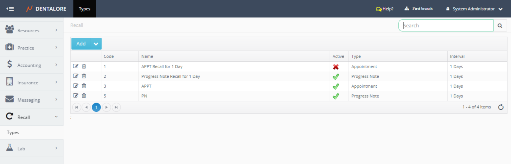 — Active: Is a check box, that’s ticked by default and means that this recall rule is active and can be used to recall patients based on it. If “Active” check box is un-ticked that means recall rule is inactive and can’t be used to recall patients.