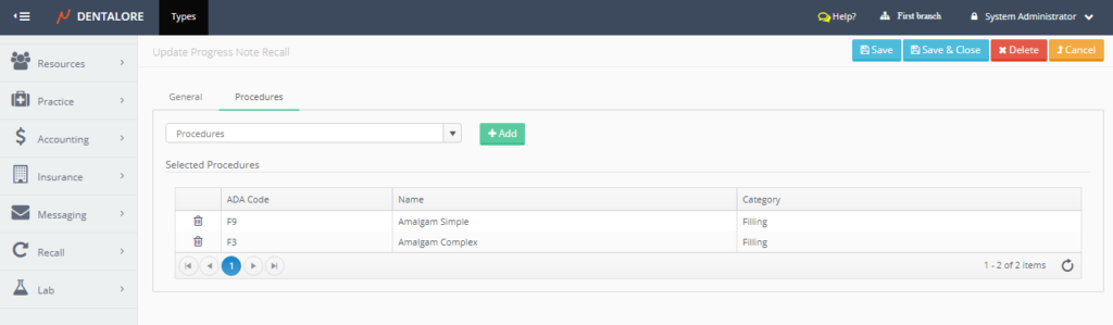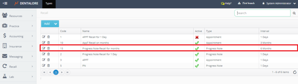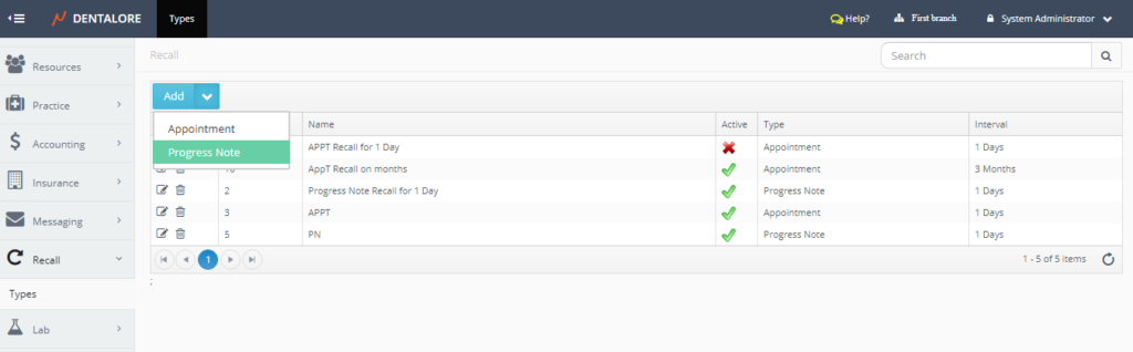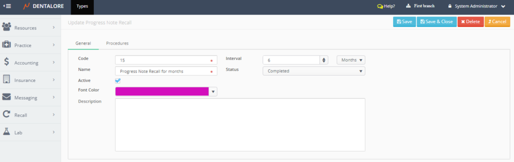 One of the recall types is the “Progress Note” recall type that works based on the completed procedures performed for patients, in which specific patients will be recalled after their completed procedures by a certain period of time (Interval).