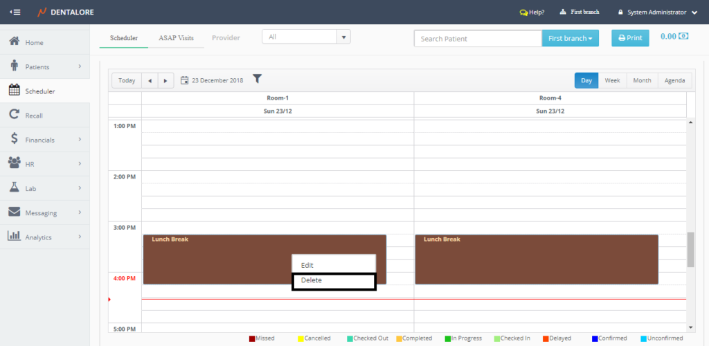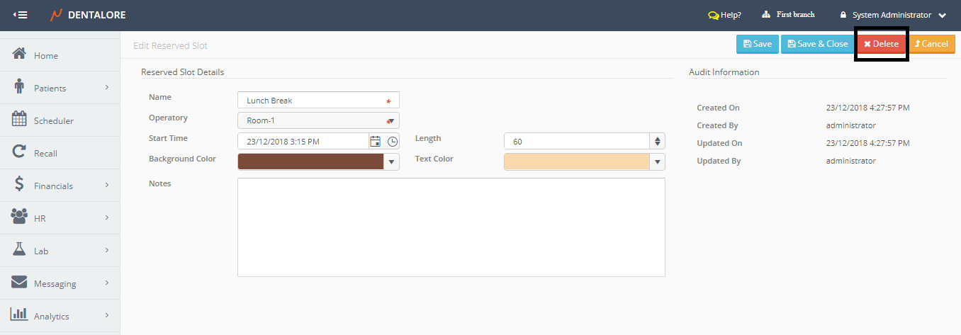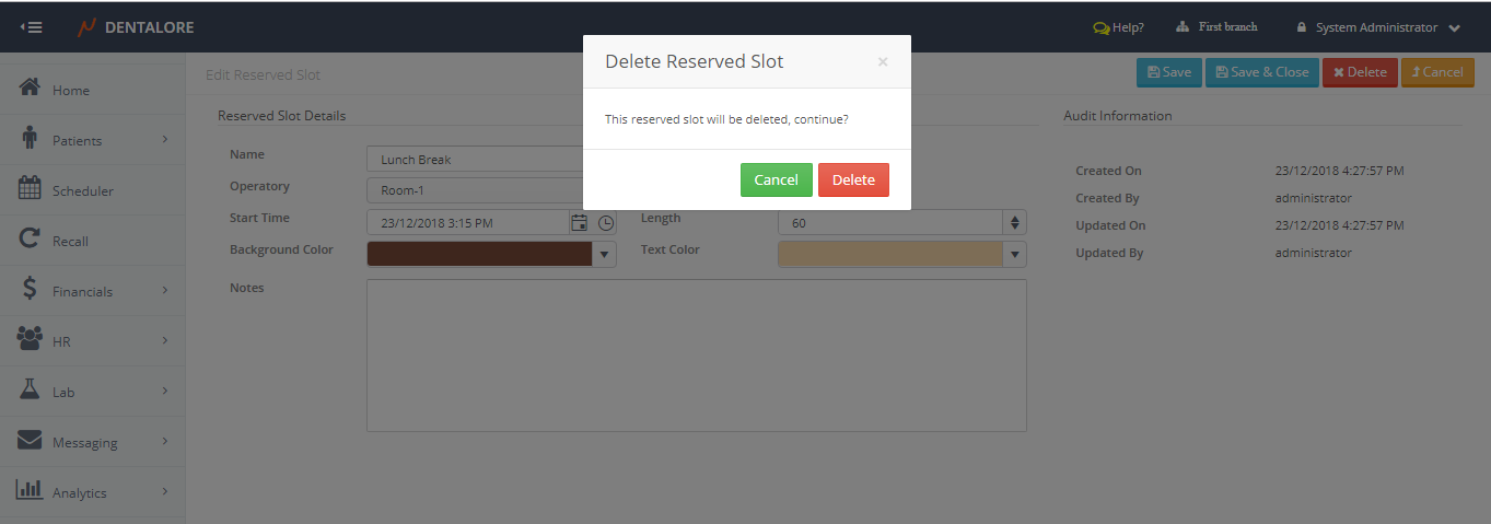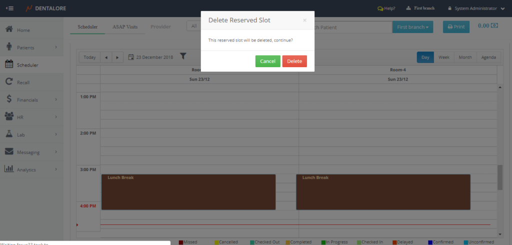 If user press "Delete" then directly the reserved slot will be deleted and removed from scheduler.