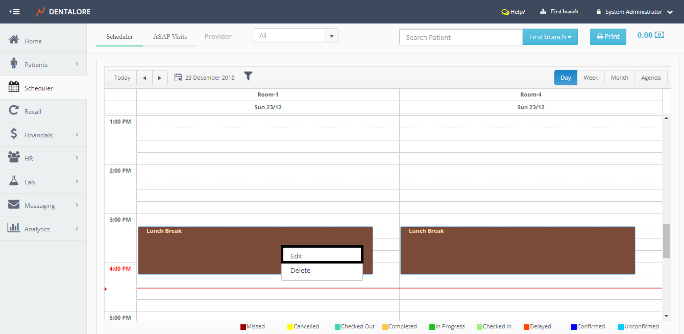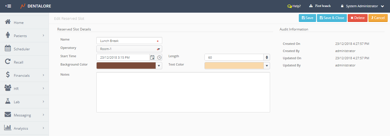 Scheduler Module enables user to add, update and delete patient's appointments and reserved slots.