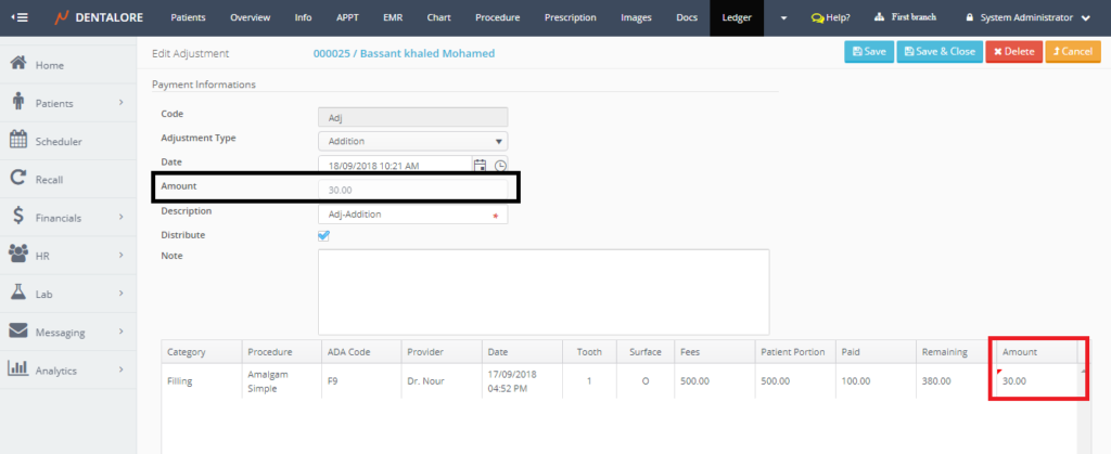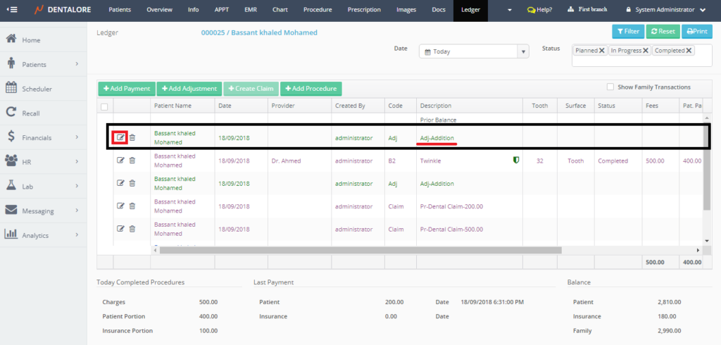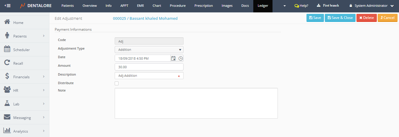 User who have the access rights to edit in the patient's adjustment transactions, is able to edit in the adjustment records.