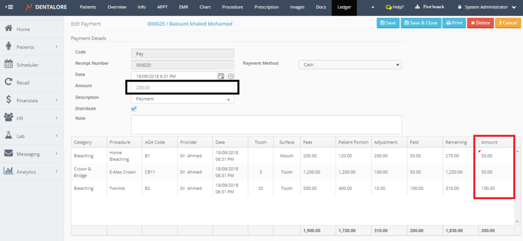 >> In order to edit the amount value, You could only edit it from the "Amount" column in the grid view and this update reflects in the "Amount" field in the payment details. - Also from the "Edit Payment" page, User could Print and delete the payment transaction, For more information, Check: