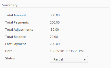 - Once a payment and/or adjustment transactions are performed against specific invoice, then automatically status of invoice changes to be: Partial.