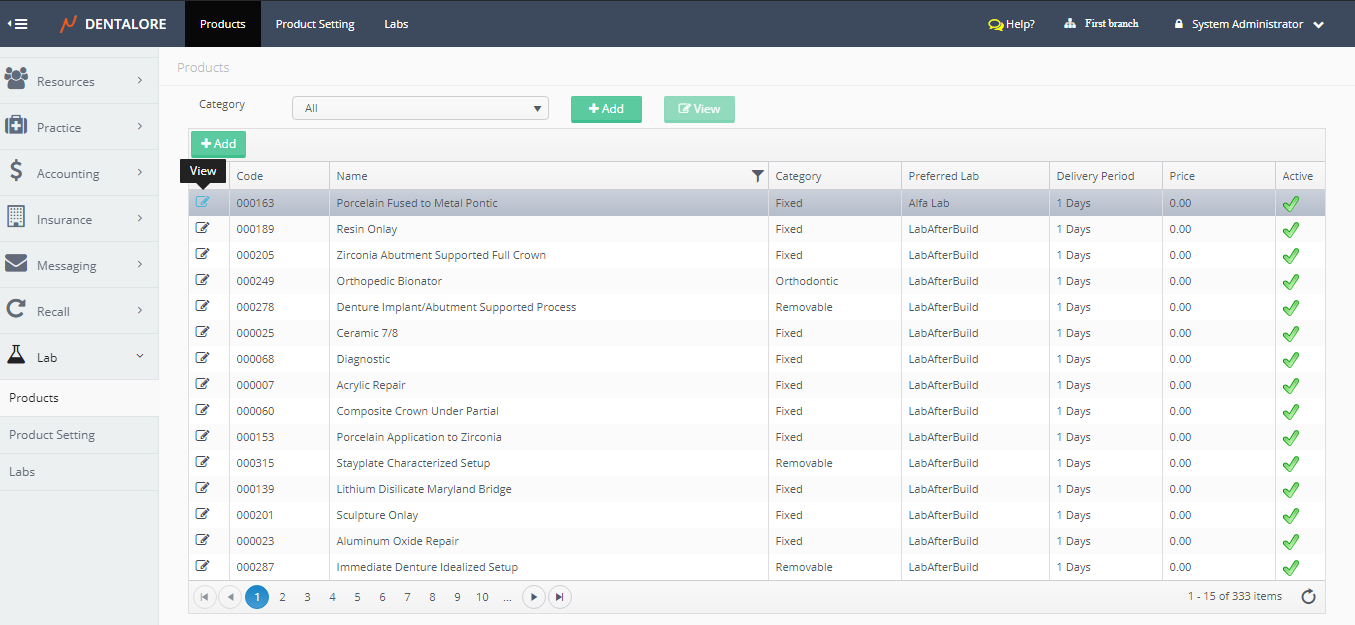 • Expand “Lab” Menu and select “Products”, Select any of the existing lab products to add labs to it.