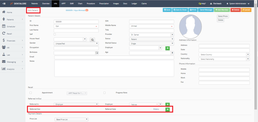 >> For the “Referred Out“, this part appears only after saving the patient’s data, that it’s displayed in the “Edit Patient” page.