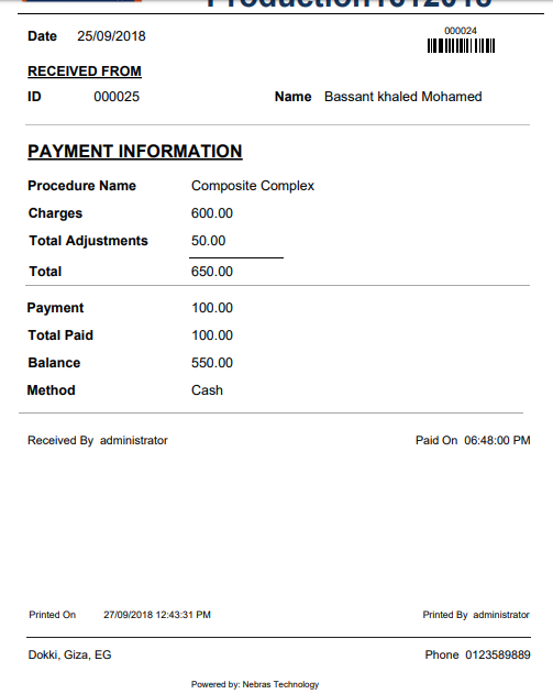 • Note that each receipt has a unique code that's created for each payment transaction. For more information about managing the receipt's format, Check: Configure Automatically Generated Codes.