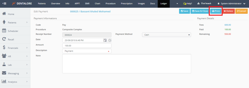 User who have the access rights to edit in the patient's payment, is able to print in the payment transactions for patients.