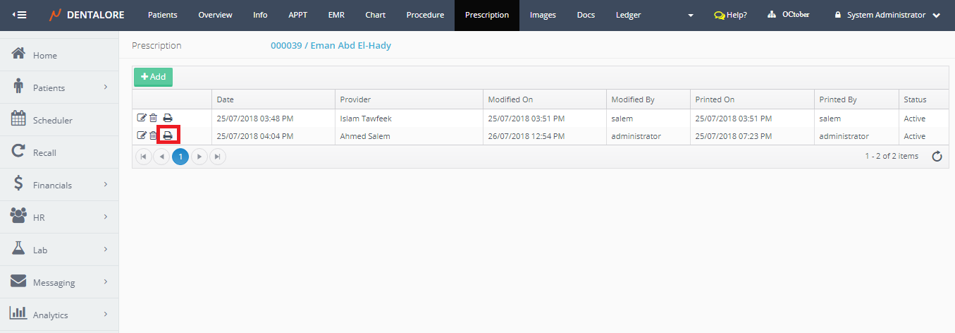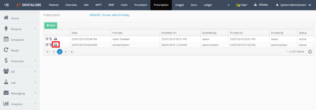 As well, the user has ability to print a specific drug from the prescription without printing all of drugs exist in the prescription.