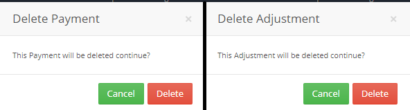 — “Delete” Icon: Once pressed for a payment transaction, then Popup “Delete Payment” appears. And for an adjustment transaction; Popup “Delete Adjustment” opens to cancel or confirm the deleting of the transaction. - Date: Is the date when the transaction (Payment and Adjustment) has been created.