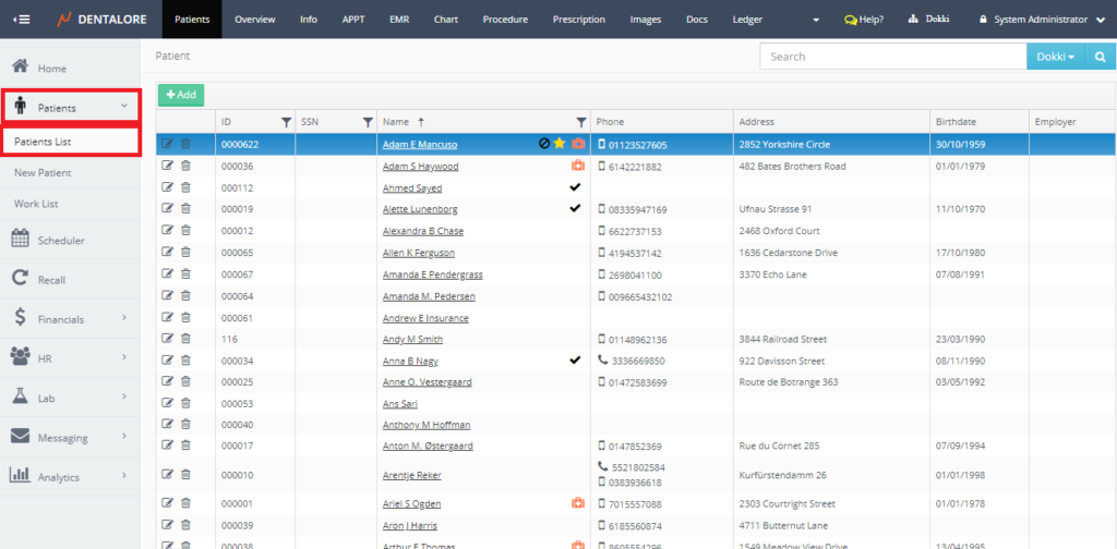 - Expand “Patients” menu and Select “Patient List”.