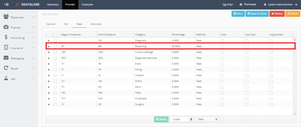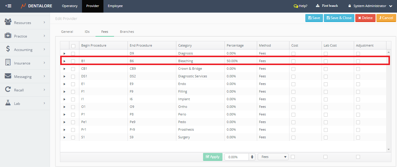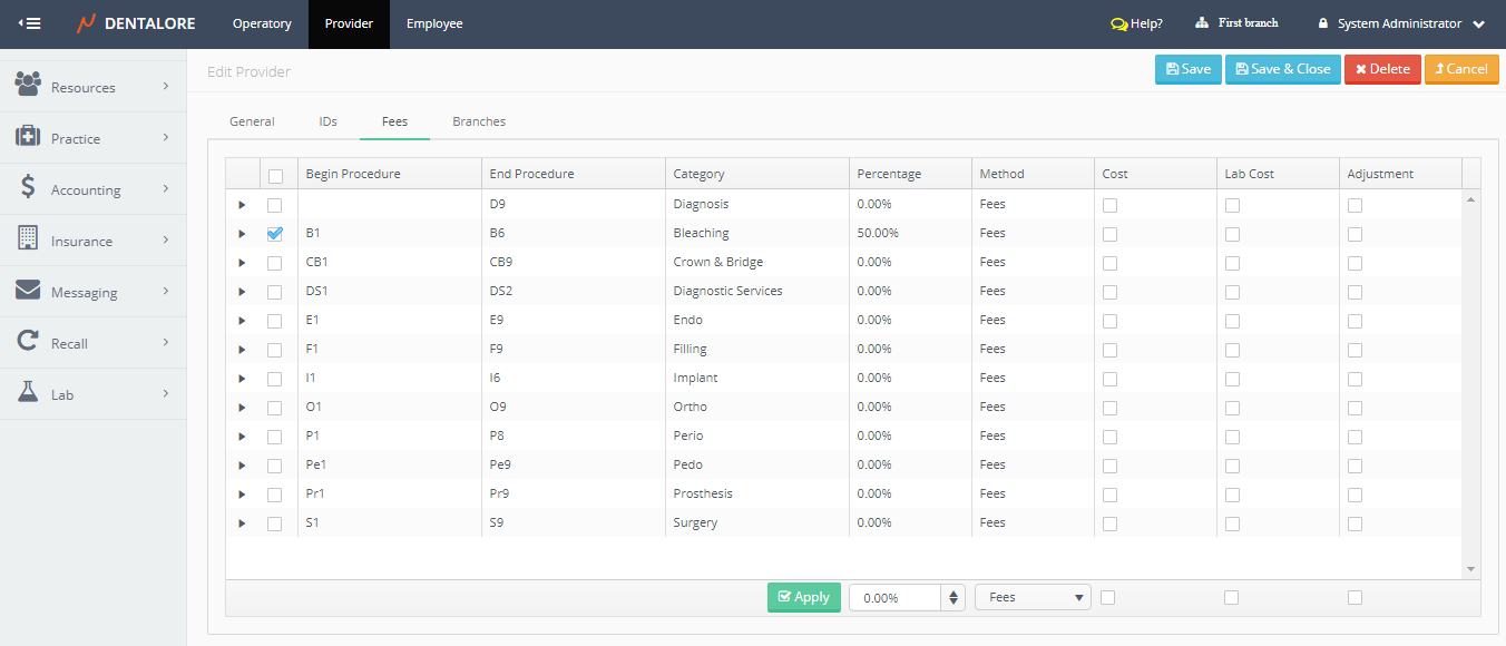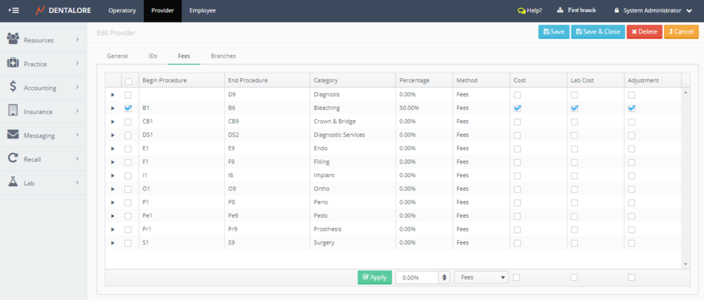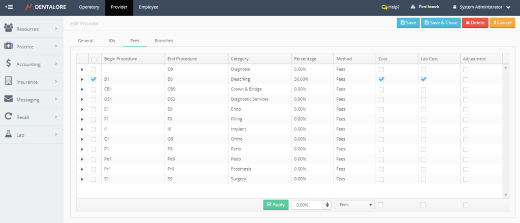• As well user has the ability to select which of the existing parameters (Cost, Lab Cost and/or Adjustment) will be included in the provider fees by ticking the check box of required one.