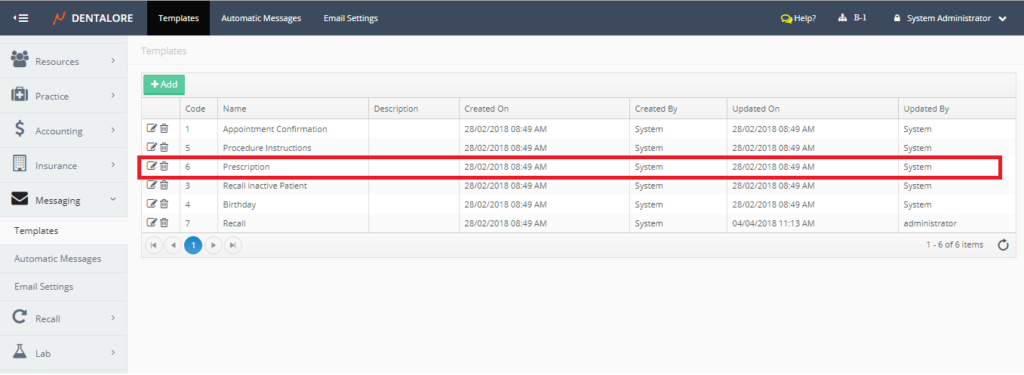 Go to Settings –> Practice –> Prescription –> Templates