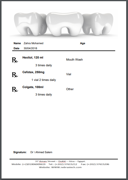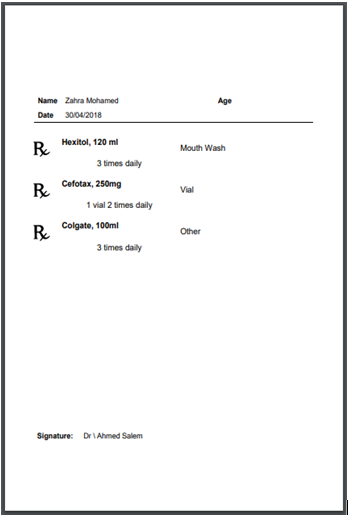 The user now has the ability to add a header and footer designed by him as an image in order to be used in prescription printouts.