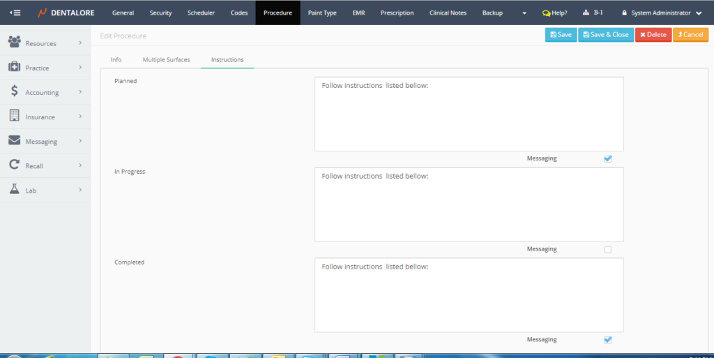 Go to Settings –> Practice –> Procedure –> Select specific procedure –> Instructions.
