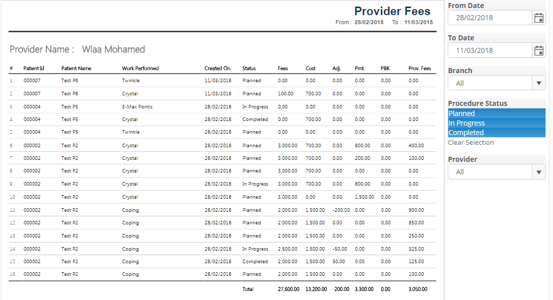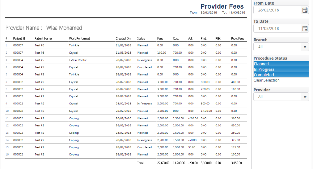 Provider fees Report