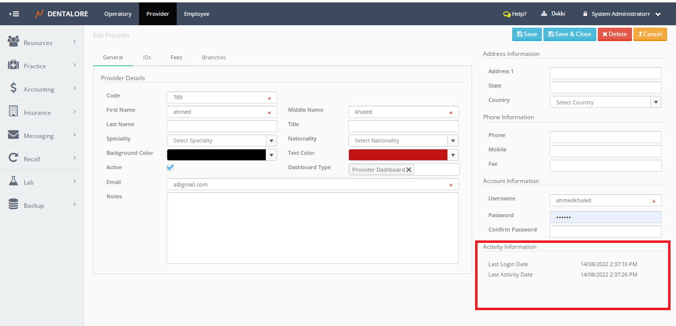 Now in Dentalore you can see when was the Last Login or last activity done by each user.