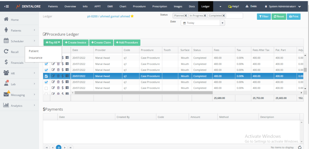 Now in Dentalore you can pay all insurance parotion of the selected procedures by one step instead of selecting each procedure and pay it individually