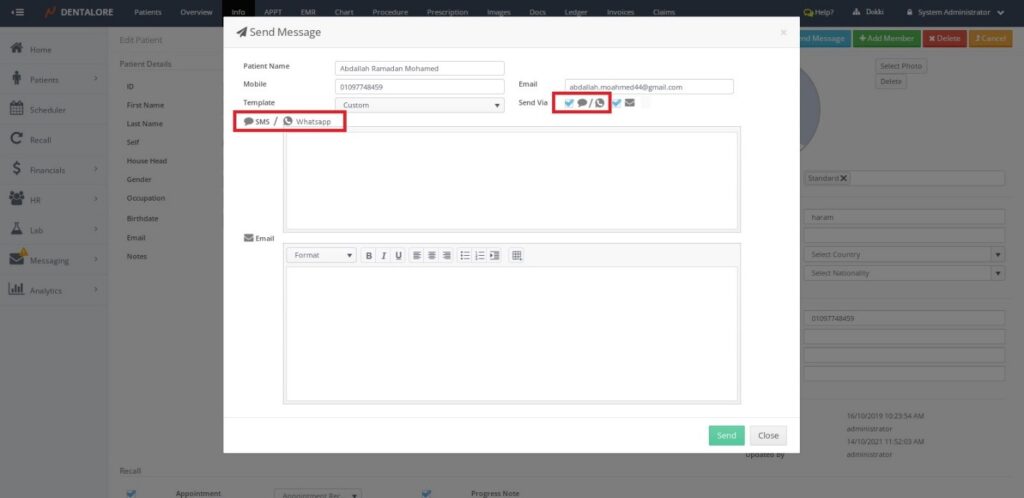 • Dentalore >> Login >> Patients >> Patients List >> Patient Info Tab >> Add Patient >> Phone Information >> Mobile