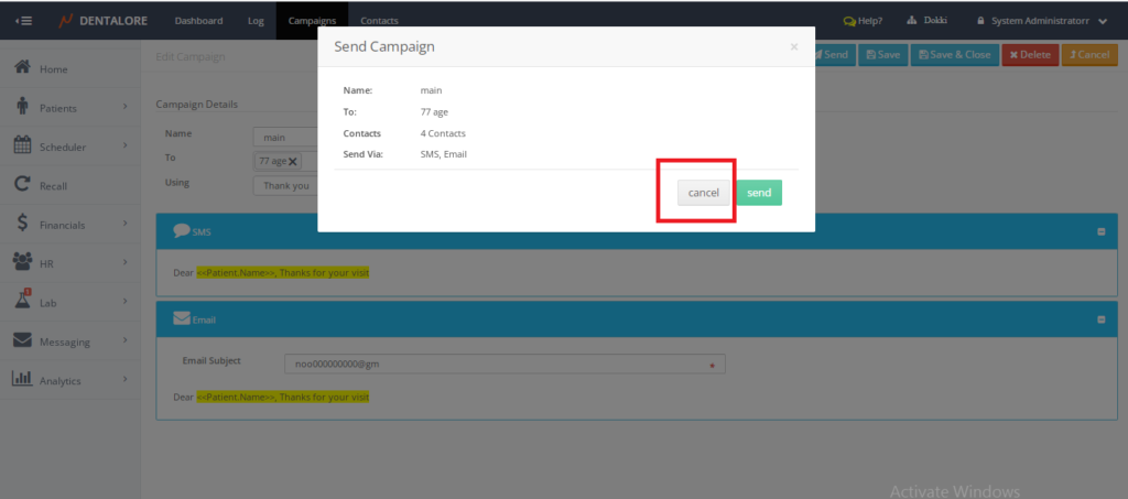 Location: Dentalore >> login >> Recall tab