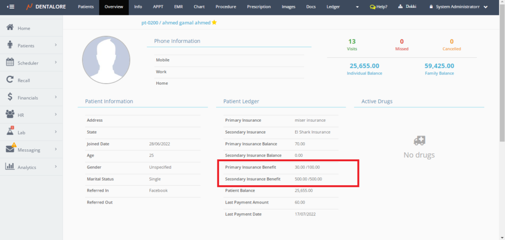 Also In add/edit appointment you can see patient's insurance maximum and remining benefit displayed in Insurance Information section