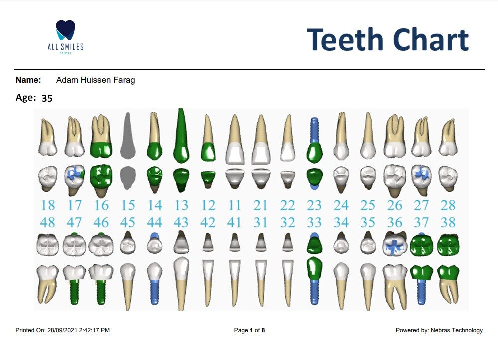 Now you can print colored teeth chart from Chart tab