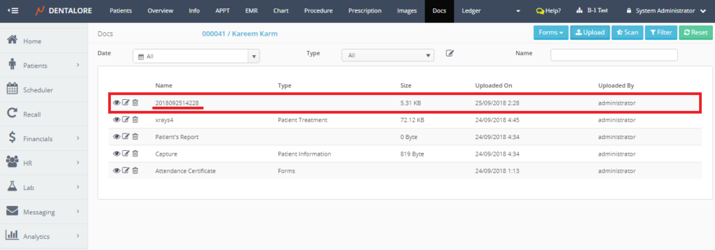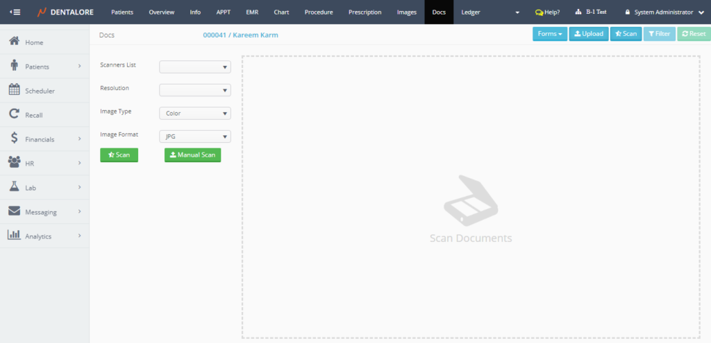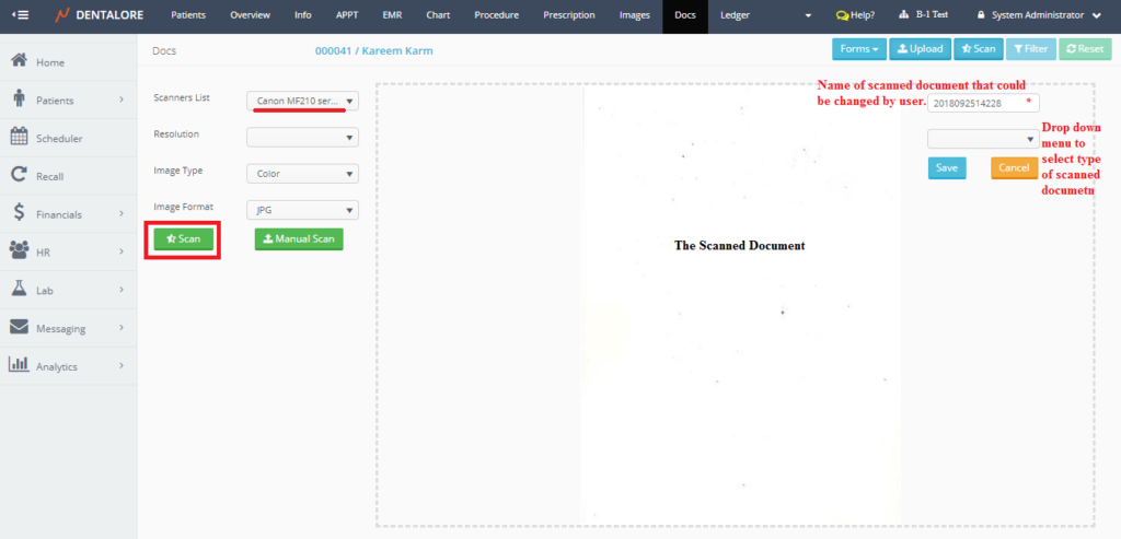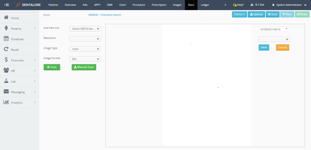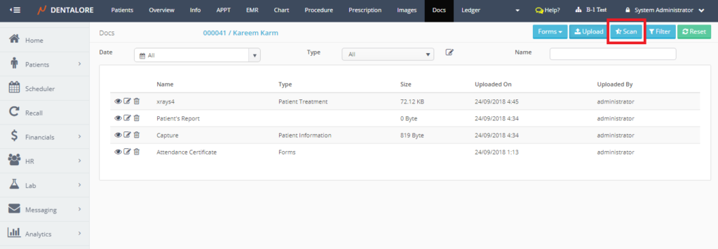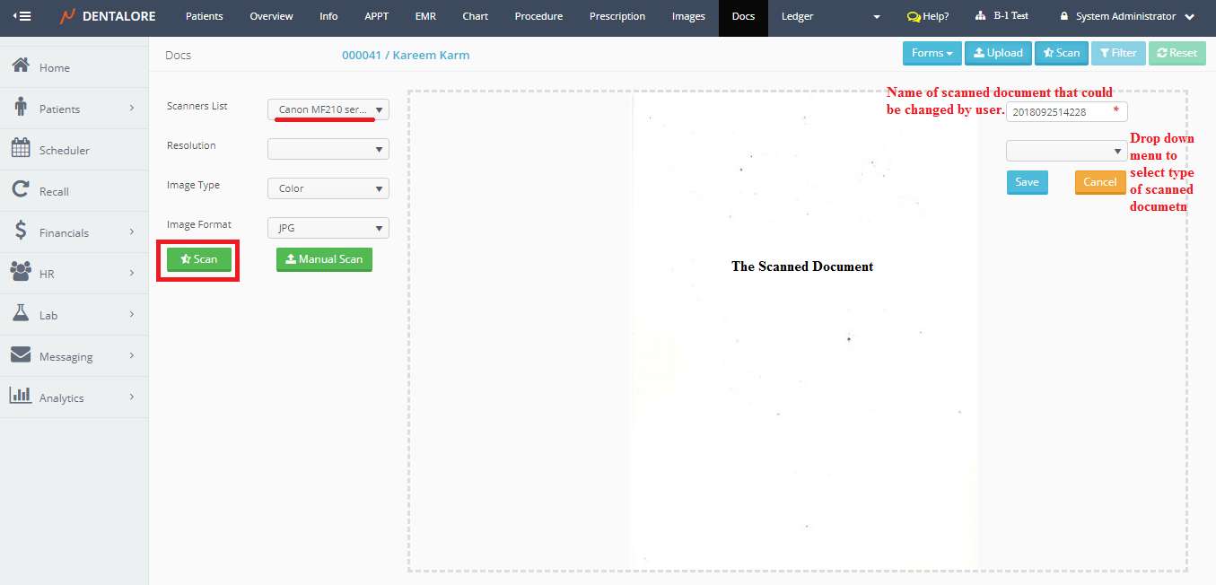 Scanning patients’ documents is one of the features offered by Dentalore System in order to give the user many different ways to add documents related to patients.