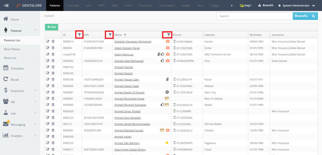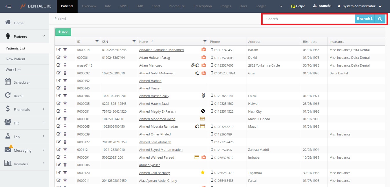 Dentalore system allows the user to search for specific patient using different searching criteria, that are mentioned in details in this article.