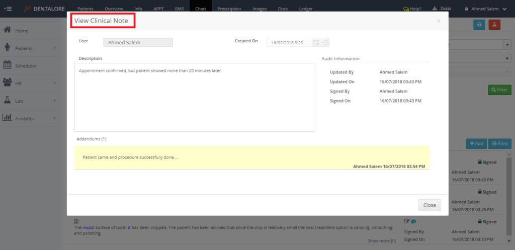 In Case the provider need to add more information or new data related to a specific clinical note, So he/she could write an addendum. For more details about how to add addendum, check: Add Addendum.