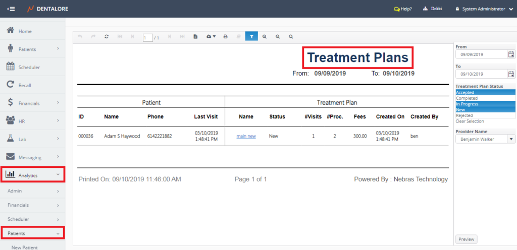 - displays the Treatment Plans of patients so that user could follow up with them.